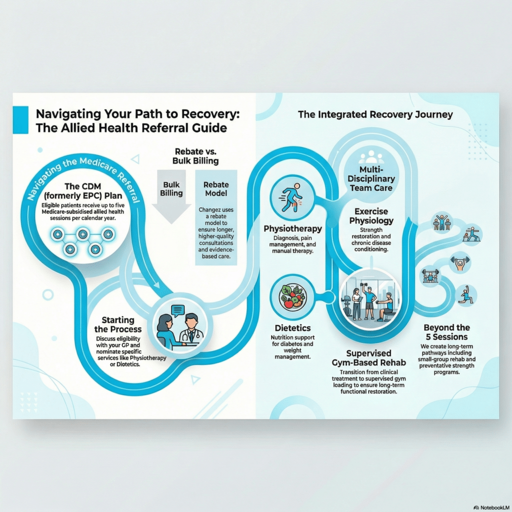 Under Australia’s Medicare system, eligible patients can access allied health support through GP referral. However, the true value of allied health lies not just in accessing sessions — but in structured, coordinated care that builds long-term capacity.