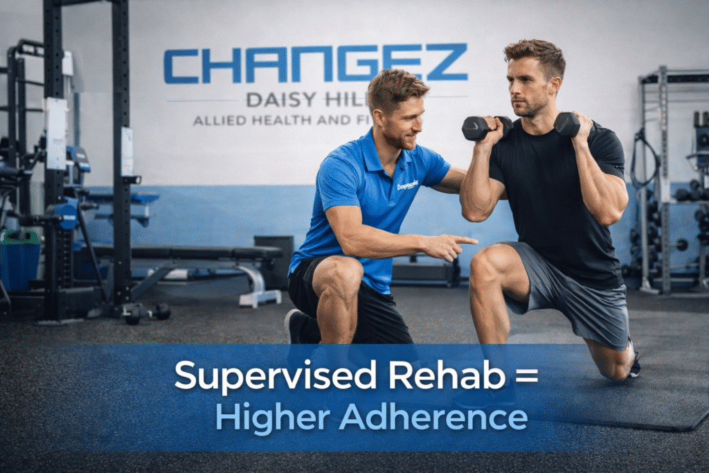From a behavioural perspective, structured supervision increases both competence and confidence. Patients know they are performing exercises correctly. They see progression. They feel improvement.